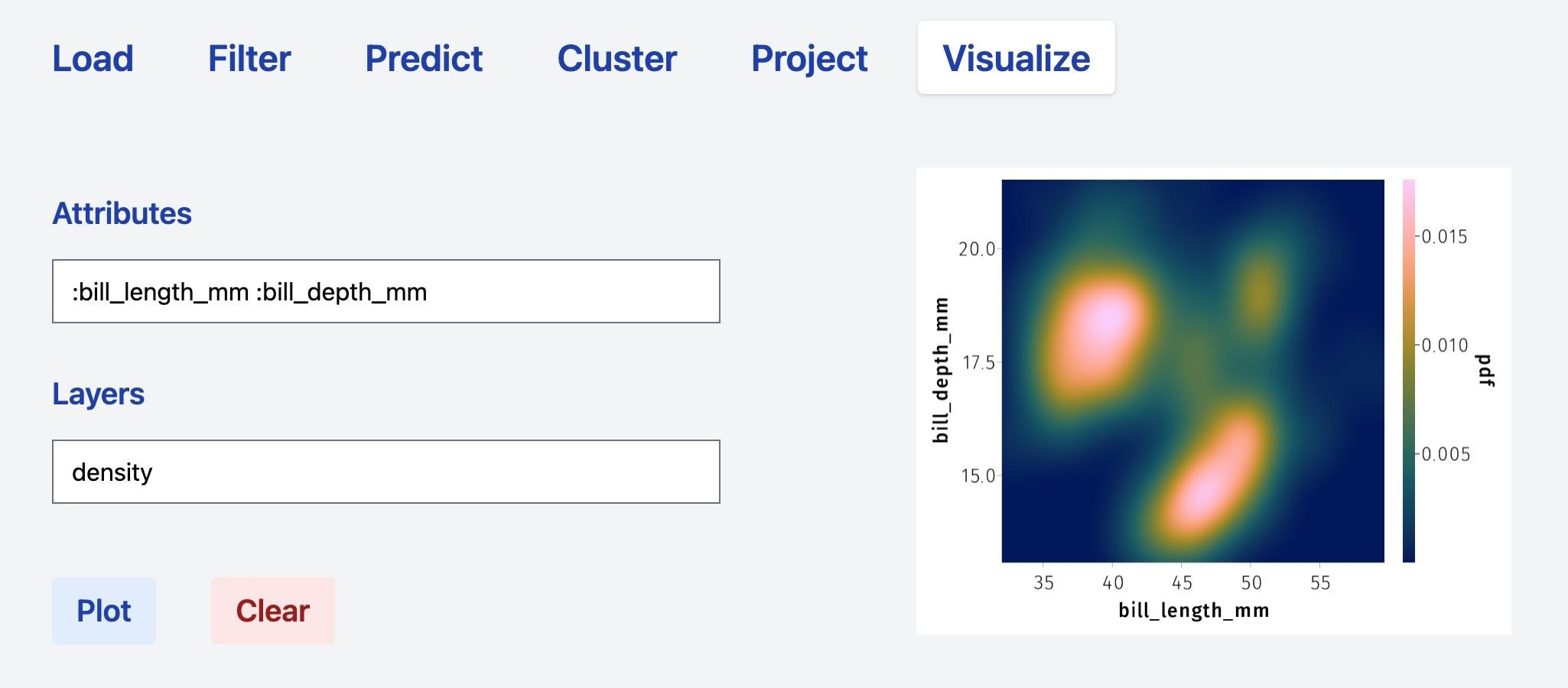 visualizing the output of the computational tabs (prediction, clustering, dimensionality reduction).
